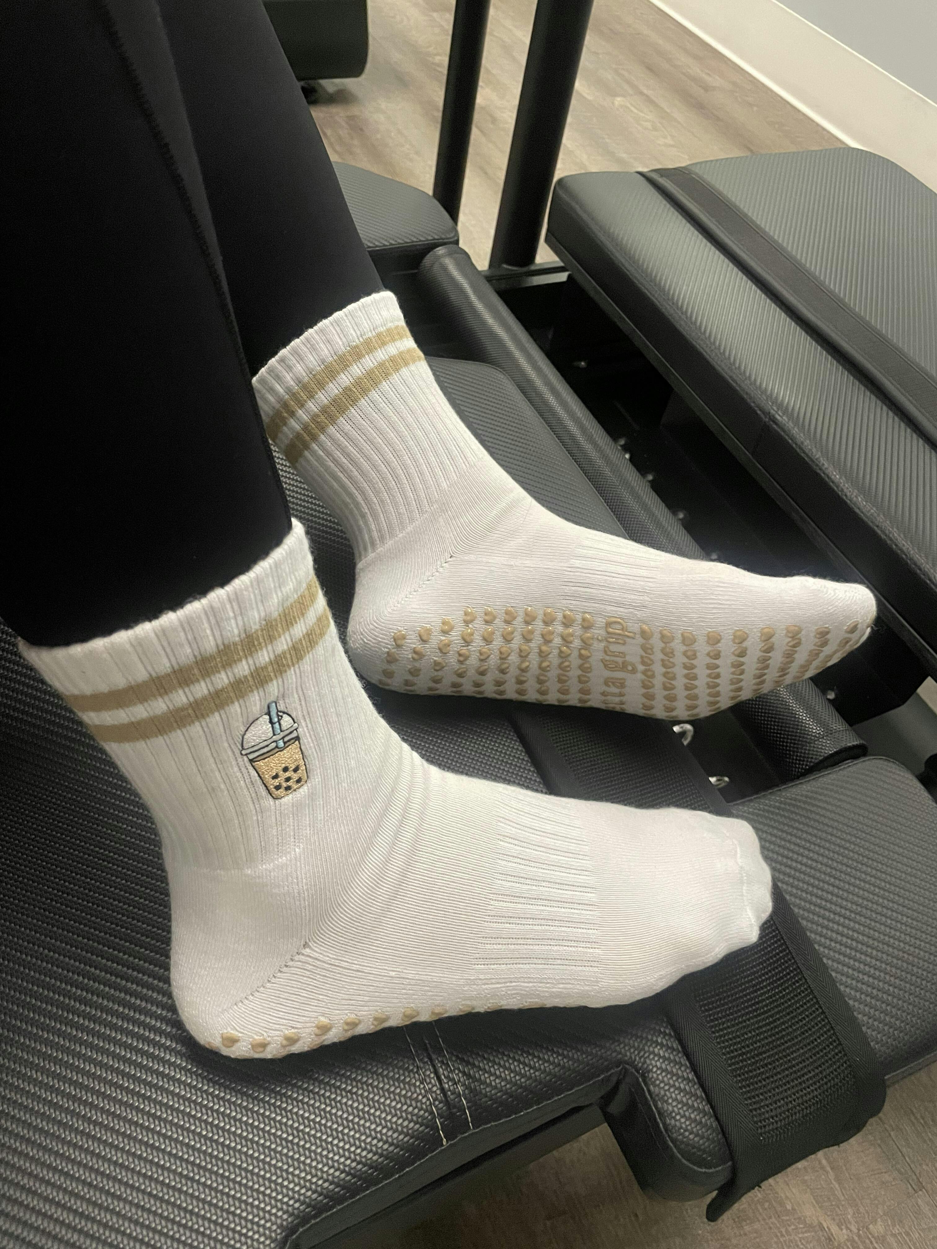 🧋the bo-barre sock 🧋 - we are just happier if we have a boba in our hands. if you cut us open we might be 90% boba and we wear that badge with pride. on our socks. that we made. here they are. look at them.